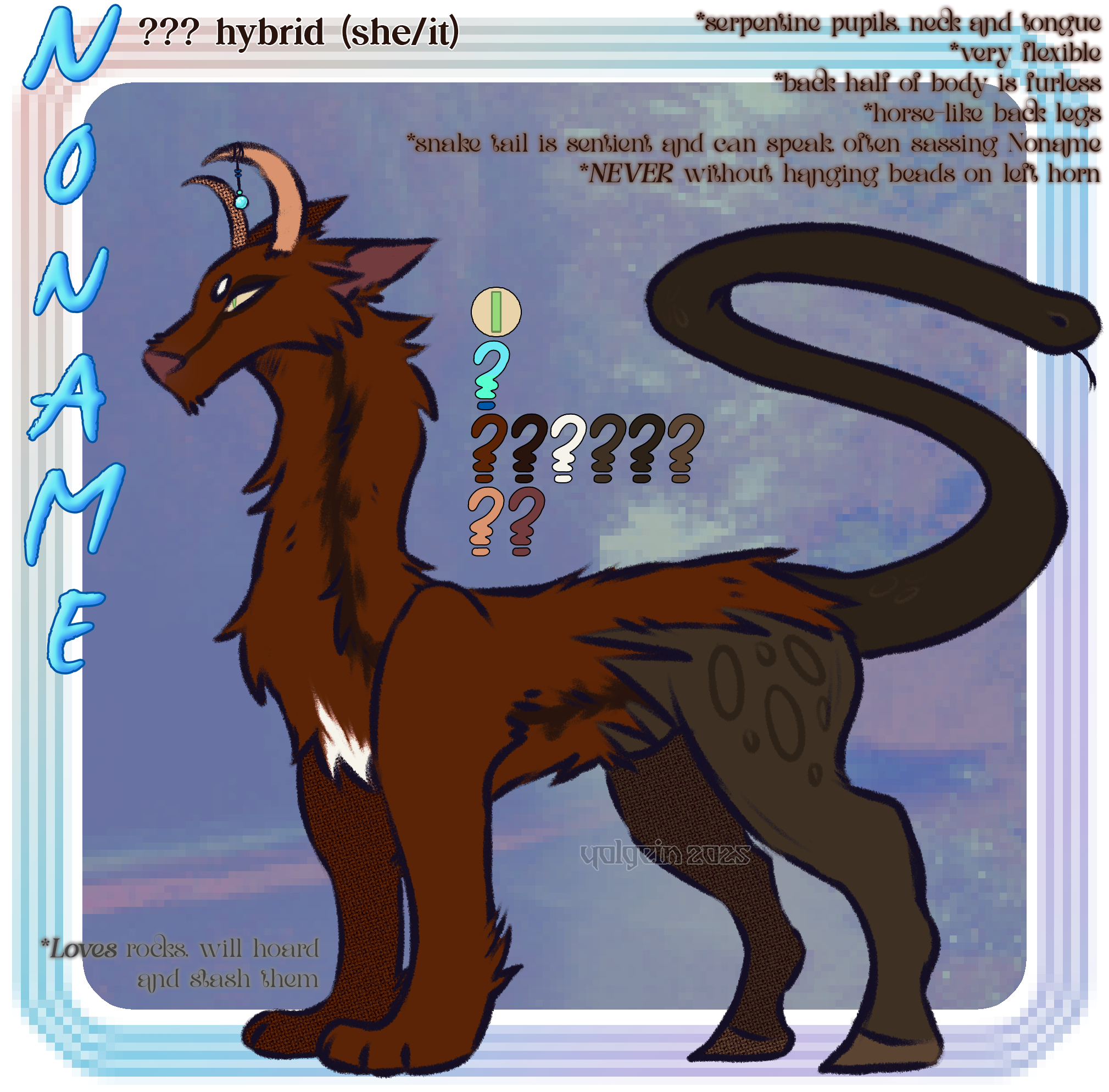 By commissioning me, you hereby agree to my terms, so please read thoroughly. Breaking any of these terms will immediately revoke any art made for you and be repurposed for compensation and you will be blacklisted.FULL CREDIT IS DUE ALWAYS. NEVER REMOVE MY SIGNATURE/WATERMARK. NO EXCEPTIONSI, Yolgein, have full rights over my artwork and designs. If you wish to commercialize your piece please discuss this before commissioning me. If you wish to keep it private there will be an up-charge of minimally 200% of the piece (i.e rendered fullbody will cost $75.00 total)No NFTS, my artwork cannot be used for AI-research and if found so, it is stolen!DO NOT EDIT/ALTER my artwork, if I got something wrong even after completion*, please let me know!I can refuse, cancel and/or blacklist a commission(er) without giving a stated reason, respect my decision.Commissioned art is NOT to be used UNLESS you have 100% paid.TAT varies between a couple of hours to a month or so, depending on health and motivation. Please be patient as I have a job, do NOT prod or rush me. You may ask for an update in a week or so if I not given you a status. I will not provide WIPs past the sketch unless agreed before-hand or I need to ask questions/confirm detail(s).Provide clear and unshaded (or minimally cell shaded) reference(s)*Changes will be free of charge at the sketch stage, 1-5 changes during lining/coloring (like adding small details, mistakes, etc.) After that point you will pay an agreed amount per change and I will not change anything after completing your commission and you have not notified me of something being incorrect within a reasonable period.Designs/customs are to be sold at equal value, UNLESS there is art added onNotify/ask if you are reselling/trading/giving away a design, I like to keep track!You can redesign my designs but give credit for original design, you may not claim the design (edited or not) as 100% yoursArtwork/designs you receive will only be used for personal/non-commercial use, if you are interested in commercial use there will be an up-charge + royalty/licensing fees upon negotiation and a written out agreement will be made.No refunds unless stated otherwise [i.e. If I have not completed owed art within six (6) months (or longer) without public/personal explanation.]Payment is expected upfront via invoice. You have two (2) days to pay, or your slot is canceled.